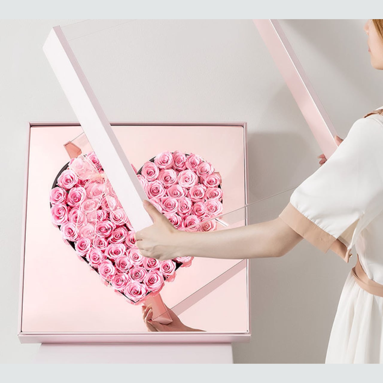 ハートボックスは、愛を込めて贈る特別なプレゼントにぴったりのアイテムです。ハートの形をした可愛らしいボックスには、美しい薔薇が丁寧に詰められています。プロポーズや記念日、誕生日など、大切な人への特別な贈り物に最適です。